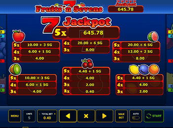 Для всех игроков, которые начинали свою деятельность еще много лет назад, символы в виде картинок с фруктами стали символом успеха и победы. Именно поэтому компания Novomatic решила вернуться к былым временам и создала новые азартные игры Fruits and Sevens. Разработчик решил дать возможность вишенкам, арбузам, апельсинам и прочим символам вновь вернуть себе славу. Игровые аппараты Вулкан способны удивлять своих пользователей новинками. Игровой автомат имеет несколько вариантов запуска игры. Можно играть бесплатно в режиме демо. Демо игра в slot позволит вам потренироваться и абсолютно не ощутить разницу между онлайн игрой. Но не стоит забывать, что такой вариант не сможет порадовать вас выигрышам.