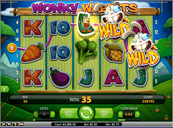 Игровой аппарат блещет весельем, безумным азартом и дикими идеями, что подтверждают символы игры: морковка, помидор, кукуруза, брокколи и баклажан. Также на игровом полотне появляется сумасшедший кролик, который поедает любимые овощные вкусняхи. А что вытворяет Вайлд – просто немыслимо! Вайлдом стала одноименная иконка, она заменяет недостающие символы, чтобы создать новую призовую комбинацию. Как только один Дикарь выпал на полотне, он создает аналогичный второй рисунок, но именно в том месте, где он сможет принести игрокам максимальную прибыль, заменяя любой другой.